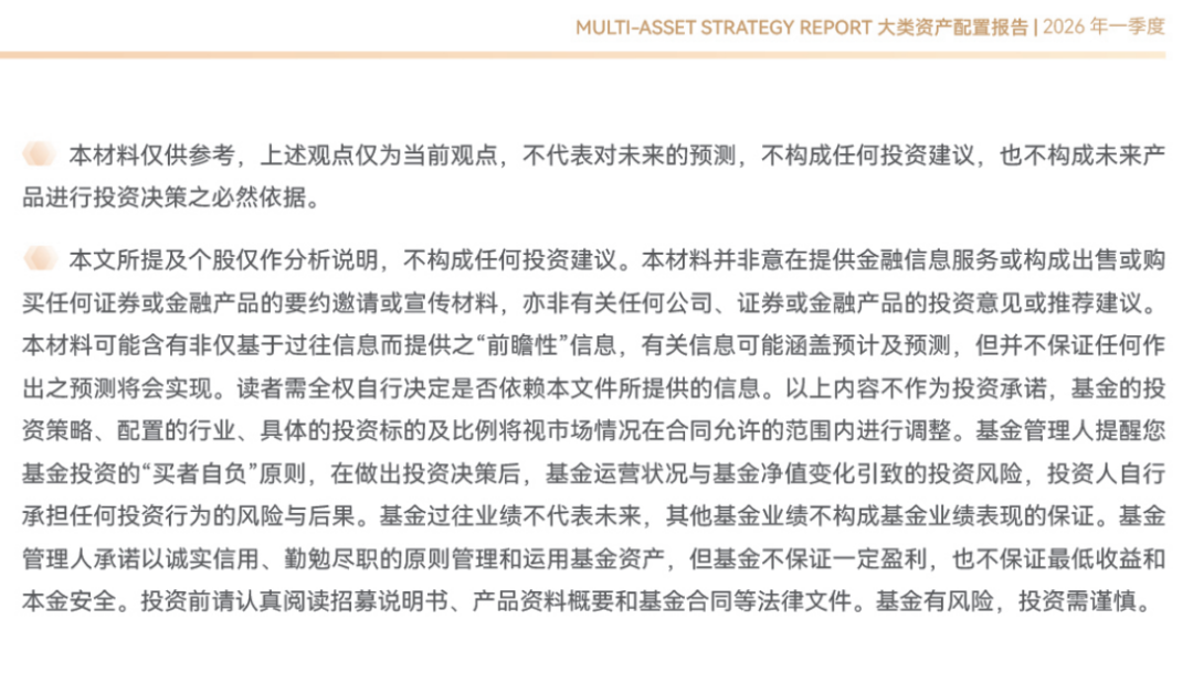 对于专业投资者而言,债市的机会或更多存在于波动之中。如果债券收益率出现阶段性下行的时候,可能存在一定的交易性机会。对于广大投资者而言,“固收+”策略或仍是性价比较高的解决方案。该策略通过多资产配置,在控制整体波动的同时,有望捕捉不同市场间的超额收益,从而展现出更高的相对性价比,这一点在2025年已得到较充分体现。