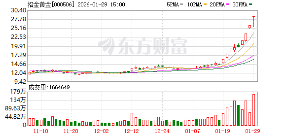 中国黄金发布公告称,公司股票于2026年1月23日、1月26日连续两个交易日以涨停价收盘。公司主营业务未发生变化,主要从事黄金珠宝首饰研发、加工、零售、批发及回购等,未拥有探矿权、采矿权。截至2026年1月29日,公司市盈率为55.63倍,公司所处行业市盈率中位数为28.60倍,公司相关指标明显高于行业平均水平。公司股票交易存在市场情绪过热情形,可能存在短期涨幅较大后的下跌风险。
