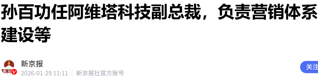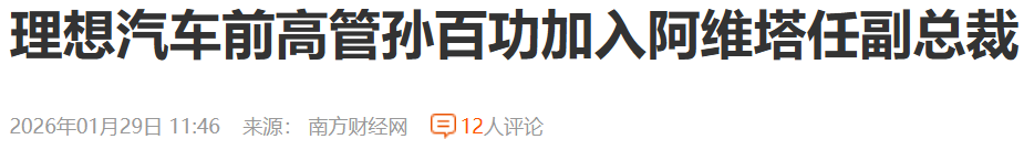 电动知家消息,1月29日,据南方财经网、新京报等多家媒体报道,理想汽车前高管孙百功已加入阿维塔,任副总裁,负责营销体系建设等工作。