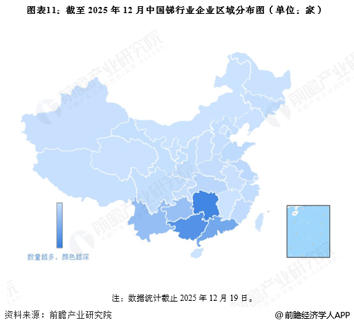 从我国锑行业企业区域分布来看,企业主要分布湖南地区,其次是在广西、广东、江西等西南地区;其余地区虽然有企业分布,但是数量较西南片区差距较大。