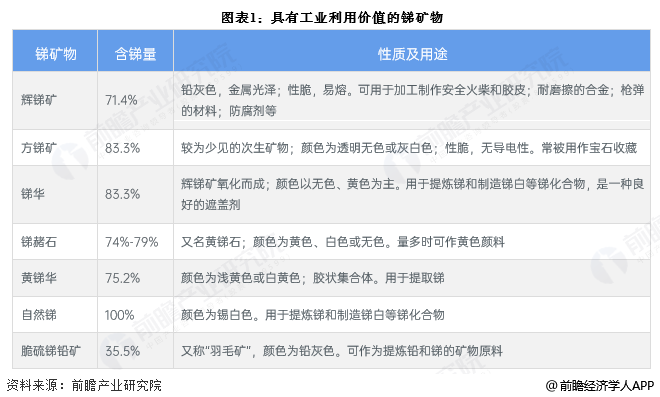 锑(英文:Antimony,元素符号Sb,原子序数51),银白色有光泽硬而脆的金属,常制成棒、块、粉等多种形状。锑作为“工业的味精”,广泛用于阻燃剂、蓄电池及铅合金、玻璃陶瓷、化学制品、催化剂等工业及军事领域。目前已知的含锑矿物多达120种,其中有工业利用价值的主要有辉锑矿、锑华等,具体如下: