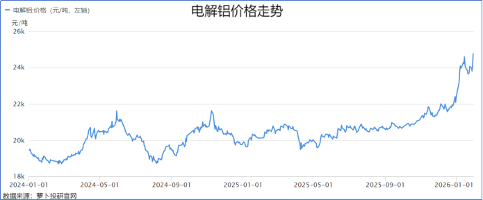 2024年1月,我国电解铝价格在19000元/吨左右徘徊,2026年1月末,这一价格已突破25000元/吨。