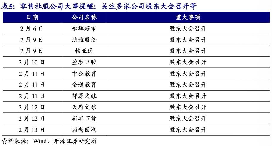零售社服个股方面,本周黄山旅游、怡亚通、壹网壹创涨幅靠前。本周零售社服行业主要140家上市公司(参照一级行业指数成分,剔除少量主业已发生变化公司)中,合计有26家公司上涨、114家公司下跌。其中,本周个股涨幅排名前三位分别是黄山旅游、怡亚通、壹网壹创,周涨幅分别为7.2%、5.9%和3.8%,本周跌幅靠前公司为新迅达(维权)、上海九百、博士眼镜(维权)。
