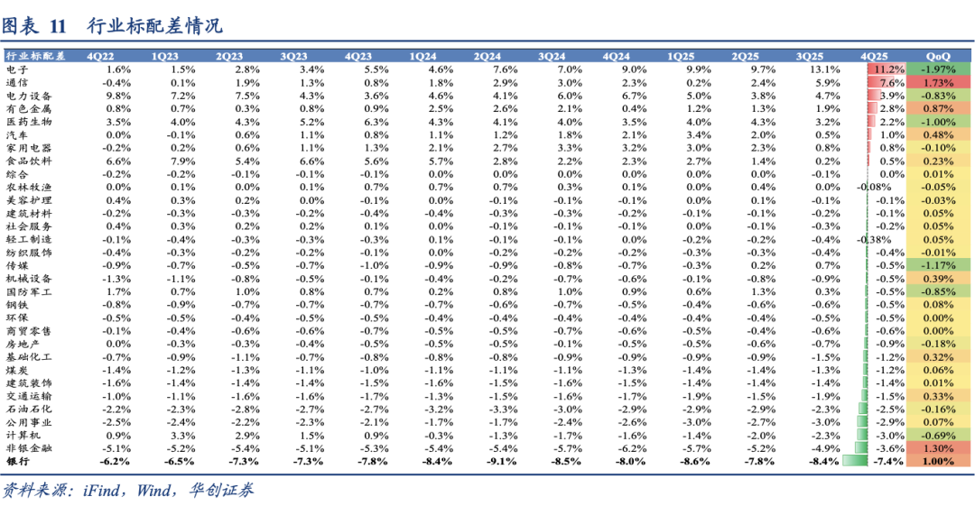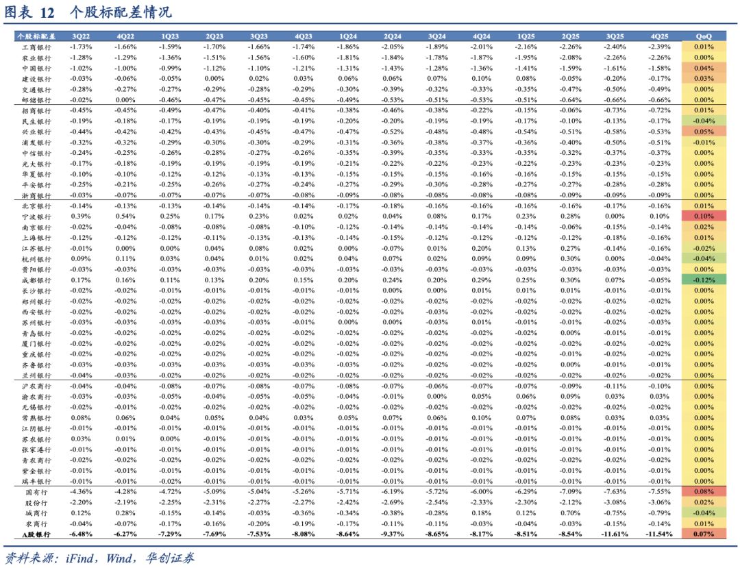 被动型指数基金主要增持高股息低估值股票。4Q25指数型基金主要增持了兴业银行(+9.0亿股)、工商银行(+5.8亿股)、民生银行(+2.0亿股)、上海银行(+1.5亿股)、沪农商行(+1.2亿股);主要减持农业银行(-3.6亿股)、中信银行(-2.0亿股)、建设银行(-1.8亿股)等上个季度增持较多的股票。