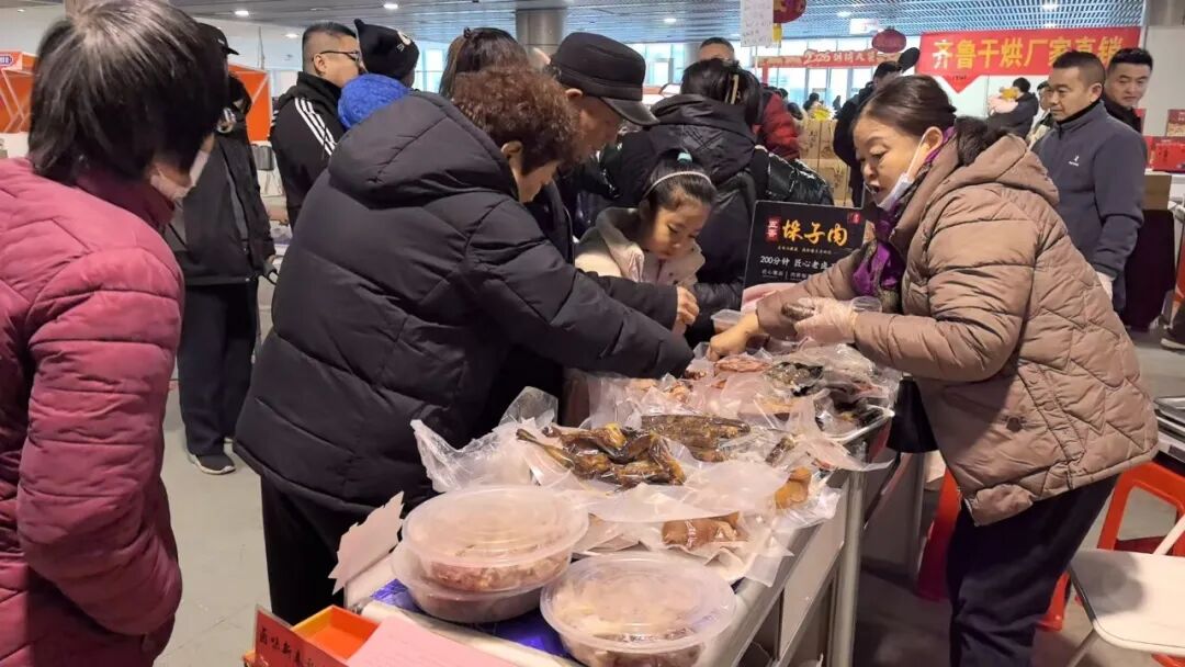 新泰面塑、泰山糖画、赵家干香老鸭等非遗项目与老字号也集中亮相,吸引众多市民观赏体验。现场设置的民俗体验、直播带货、单位采购等多元服务,进一步提升了活动热度与便民性。