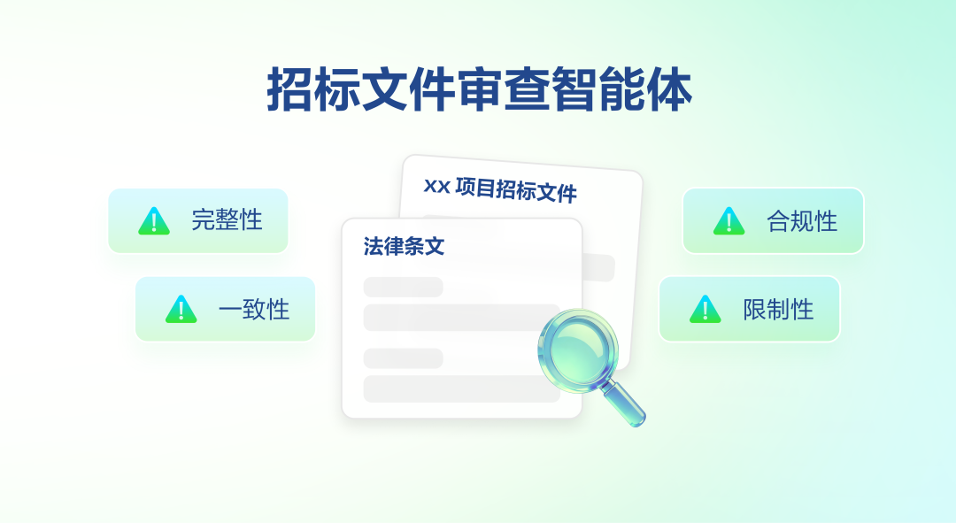 招标文件合规质检智能体,以 “可配置的 AI 审查引擎” 为核心,学习招标文件投标法律法规,通过预设规则和机制审查上传文件的合规性风险,及时预警,能沉淀企业经验、适配个性化需求,让合规审查从 “依赖个人经验” 变成 “标准化智能流程”。