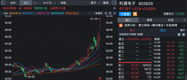2月2日,利通电子(603629)收于41.14元/股,再次涨停。公司在盘后发布异动公告,股票于1月30日、2月2日连续2个交易日内收盘价格涨幅偏离值累计达20%,属于股票交易异常波动情况。经公司自查,确认不存在应披露而未披露的重大事项或重要信息。