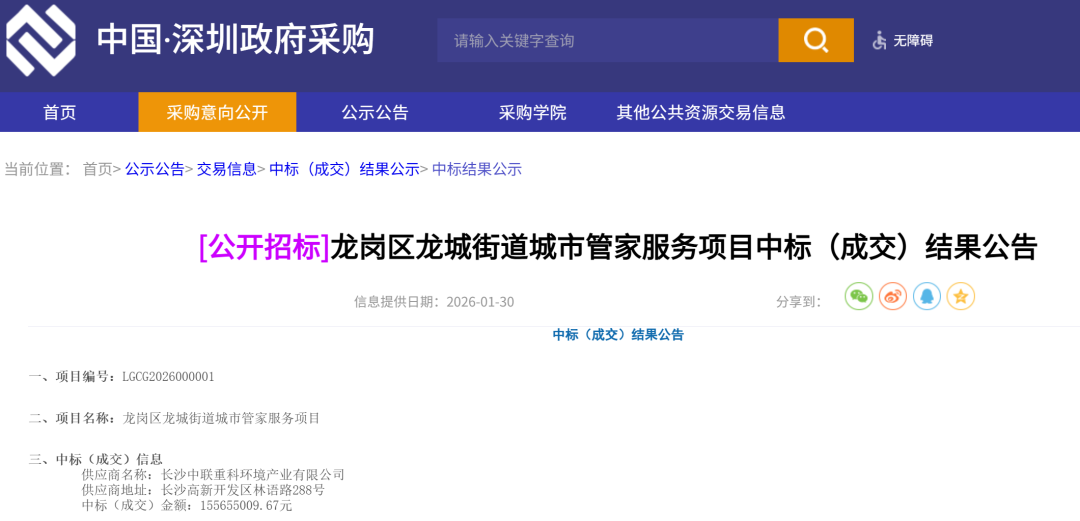 近一个月来,盈峰环境在全国环卫市场多点开花、捷报频传,迎来2026年市场拓展“开门红”。1月份,盈峰环境旗下主体在安徽、福建、广东等七省连中12标,合同总额超9亿元,新增年化服务金额约3.3亿元,其中1月30日中标的深圳市龙岗区龙城街道城市管家服务项目,年化金额1.56亿元,将规模化投放55台智能机器人,标志着其“AI+智慧服务”进入规模化应用新阶段。此前1月23日、28日,其还先后拿下河北涿州市城乡环卫一体化项目、山西侯马市城乡环卫一体化项目两大亿级项目,业务覆盖华北、华中、华南、西北等多个区域,全国布局持续展开。