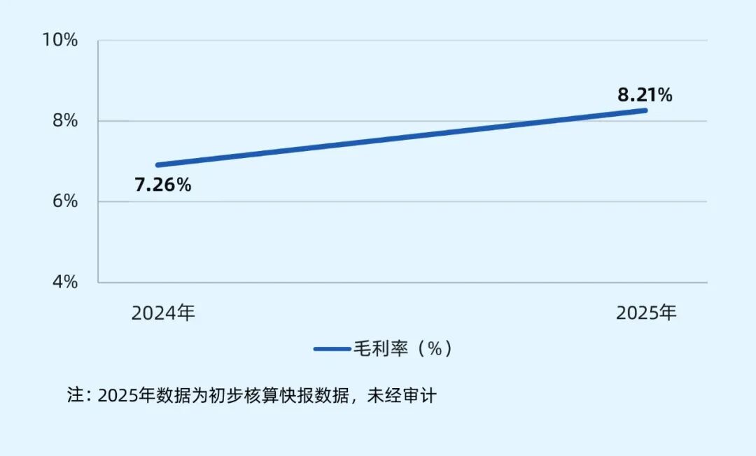 公司毛利率近年来稳健攀升,2025年达到8.21%,较上年提升0.95个百分点,成本管控与运营效率实现协同增效,经营韧性不断增强,盈利能力得到进一步巩固。