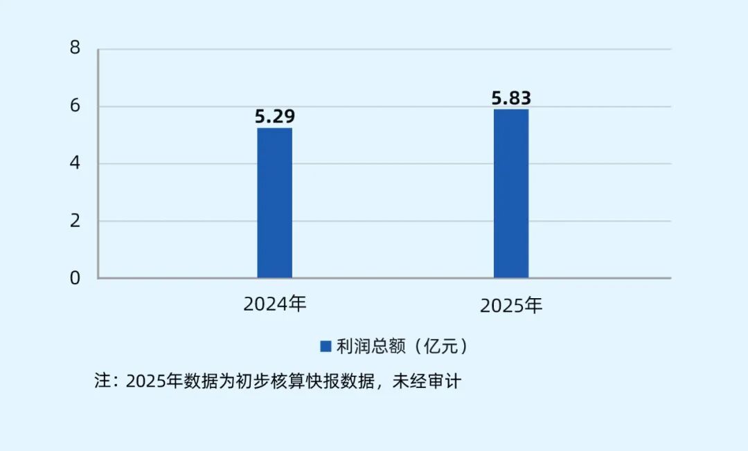近两年来,公司利润规模保持稳健上升态势。2025年利润总额达5.83亿元,同比增长10.10%,业务拓展成果持续显现,整体盈利水平迈上新台阶。