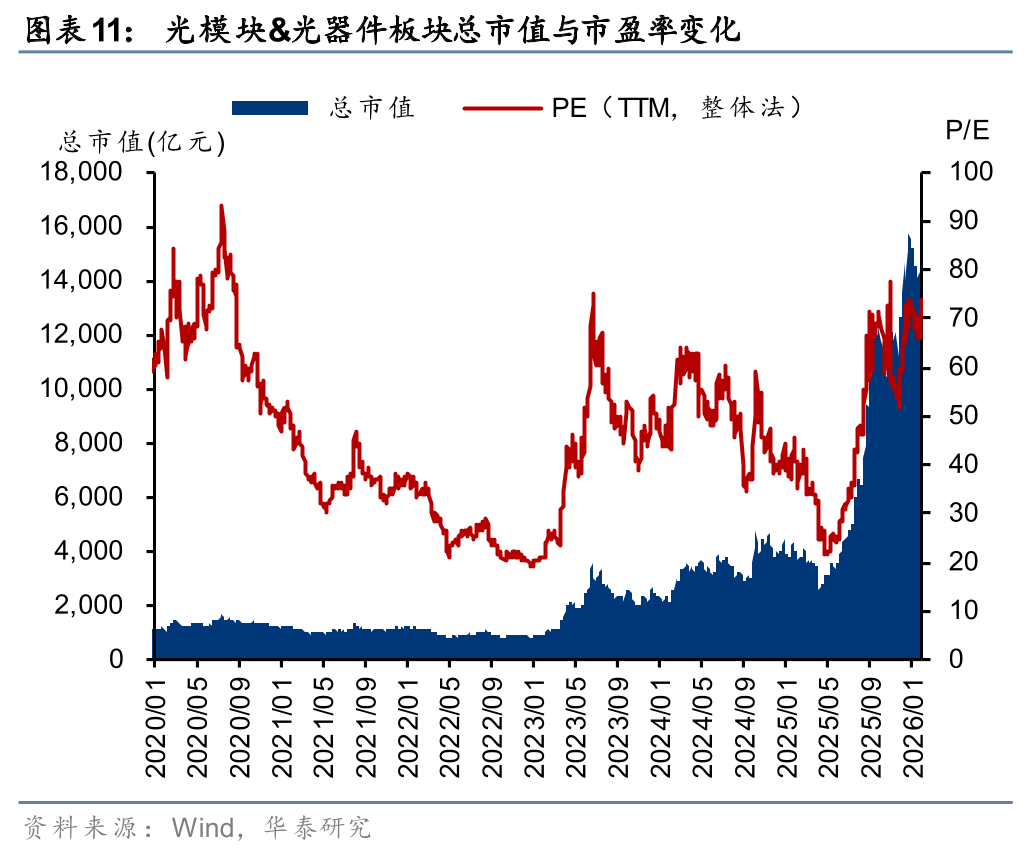 总结:全球下游需求高景气,重视光纤光缆板块。当前时点我们强调重点关注光纤光缆板块有望迎来业绩增长和估值修复的机遇。业绩增长方面,受益涨价直接带来的利润增厚盈利改善,同时AI光纤需求量高速增长,我们预计头部光纤光缆厂商利润有望进一步上修;估值方面,我们看到光纤光缆主要标的近年来交易PE在15-20x(统计23年4月至26年1月其PE-TTM平均值约为17x),我们认为目前市场在涨价周期中有望进一步推升估值。