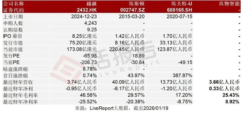 2026年1月19日,玖物智能首次向港交所递交招股书,拟在香港主板上市,联席保荐人为中金和花旗。