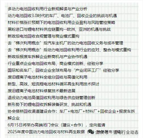 电池回收专委会的业务范围及主要工作:发动并组织新能源汽车、储能、电动自行车、通信等产业链上下游企业大力开展电池回收与梯次利用,通过广泛开展活动推进汽车、储能、通讯等产业节能减碳、资源节约、材料循环利用,保障汽车和新能源行业绿色、可持续发展。引领汽车、电力储能、通信、3C等产业向节能低碳、绿色健康、可持续方向发展。