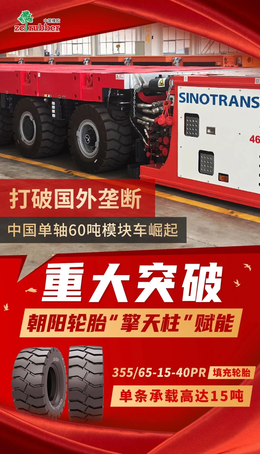 此外,中策在特种轮胎领域亦屡创佳绩。11月,中策朝阳轮胎成功研发并量产专为60吨级模块车定制的355/65-15-40PR CL621填充轮胎,实现了中国在高端工程轮胎领域的重大国产化突破。