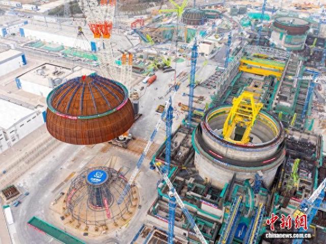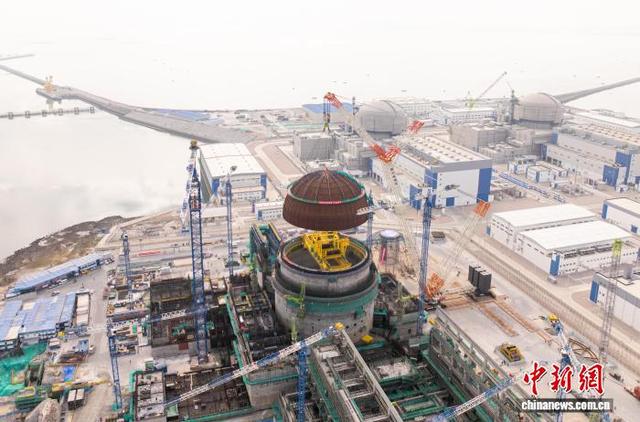 中新社漳州2月4日电 (记者 张金川)2月4日,华龙一号批量化建设中,中核集团旗下中国核电投资控股的漳州核电3号机组内穹顶顺利吊装成功。
