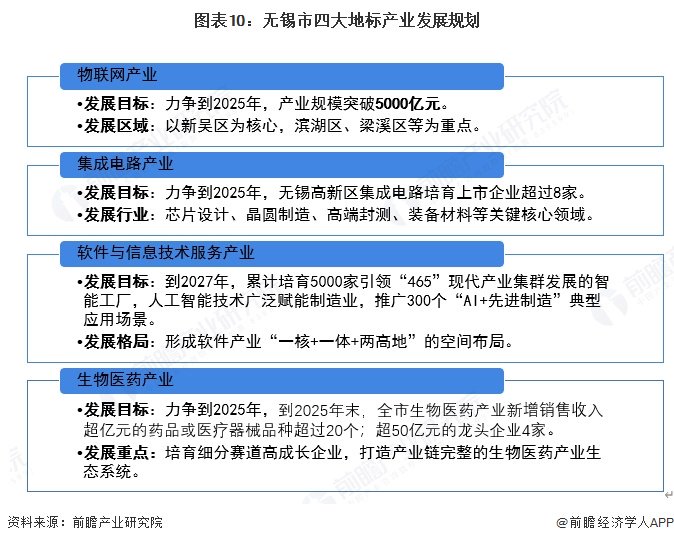 根据无锡市政府2023年2月印发的《无锡市现代产业布局规划》来看,无锡市在地标产业领域主要布局行业为物联网、生物医药、集成电路和软件与信息技术服务行业。