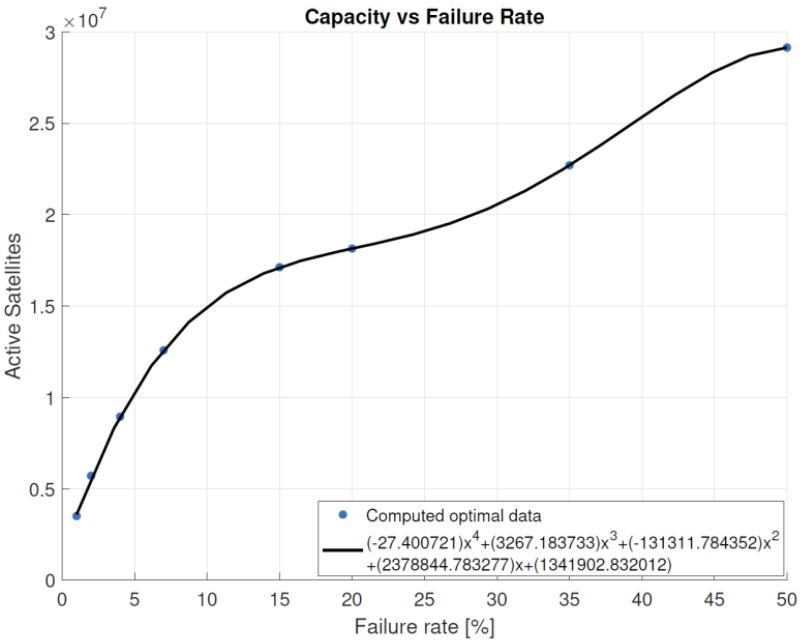 据 Andrea D'Ambrosio 团队研究结论,在兼顾空间环境长期稳定性的前提下,当卫星故障率取 7% 时,低地球轨道的最大承载容量约 1260万颗卫星,与之匹配的最优年发射规模为270 万颗卫星。能够容忍的故障率越高,轨道可承载的在轨卫星数量越多,即轨道容量越大。