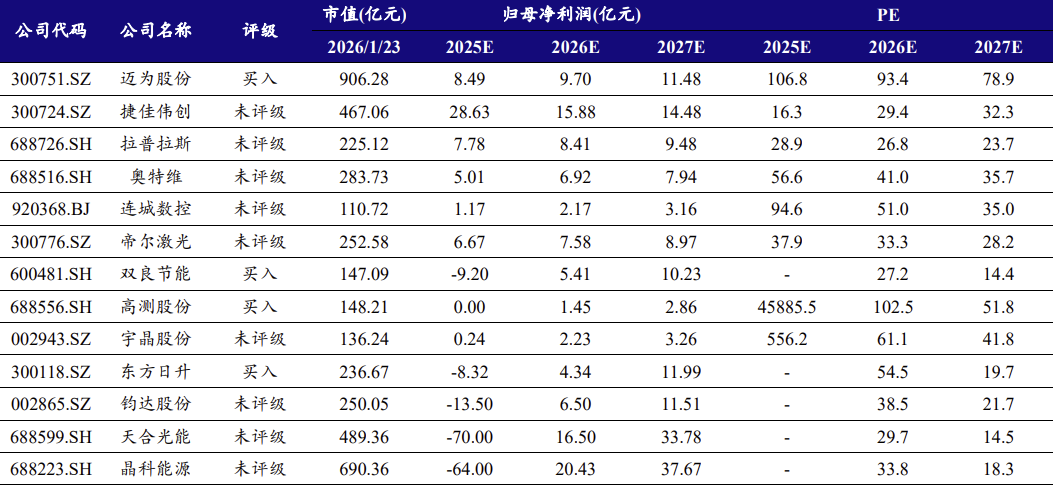 数据来源: Wind、开源证券研究所(表中公司盈利预测来自Wind一致预期,其中奥特维、双良节能、钧达股份、天合光能、晶科能源盈利预测来自公司业绩预告归母净利润区间中值)