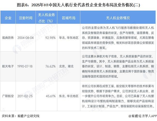 从无人机行业的上市企业布局和已有公开信息分析,成立时间最早的是航天电子,无人机业务占比最高的是中无人机。2025年企业的业务布局及具体优势分析如下: