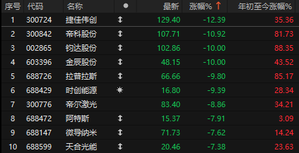 今天光伏板块大跳水,钧达股份、金辰股份跌停,捷佳伟创、迈为股份等多股暴跌。