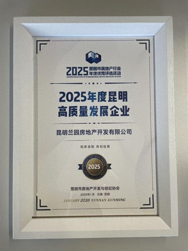 近日,在2025昆明市房地产行业年度优秀评选中,昆明兰园房地产开发有限公司荣膺 “2025年度昆明高质量发展企业” 称号。此项由昆明市房地产开发与经济协会颁发的权威荣誉,不仅是对企业综合实力与品牌价值的认可,更是对其在西北新城打造的城市更新标杆力作——“能建·未来城”所践行的高质量发展路径与央企责任的集中褒奖。