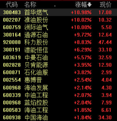 具体来看,油气股盘中拉升,洲际油气地天板,准油股份涨停。