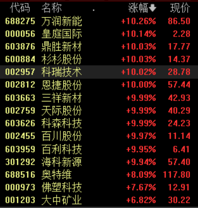 固态电池概念股掀涨停潮,恩捷股份、三祥新材、科瑞技术等10股涨停。