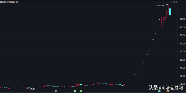 数据显示,自2025年12月25日复牌以来,锋龙股份(002931)股价疯狂飙升,2月5日其股价最高涨至118.10元/股,再度创历史新高,而期间21个交易日里累计录得17日涨停板,累计涨幅超490%……