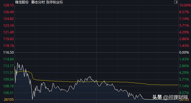 2月6日,锋龙股份(002931)录得跌停板,股价报收104.85元,跌幅10.00%,当日成交超25万手,成交金额27.5亿元。