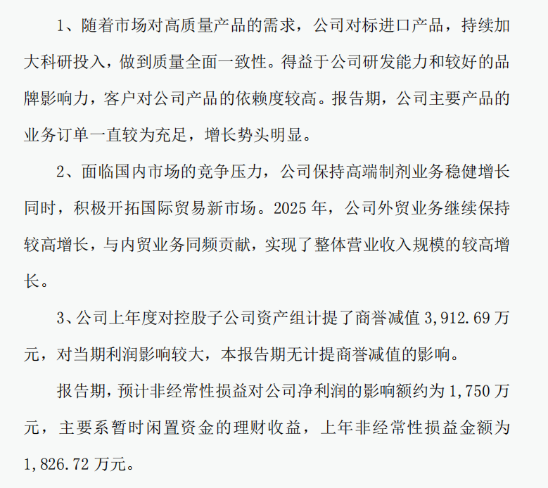 2026年1月14日晚山河药辅公布了2025年报预告:盈利1.65亿-1.94亿同比增长38.16%-62.45%;