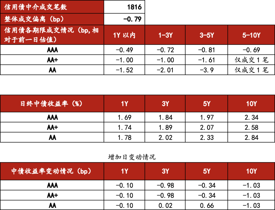 二级方面,今日成交1816笔,TKN占比80.95%,成交量活跃,买盘踊跃,整体低估值1-2bp成交。目前风险情绪低迷,股市商品整体支撑债市阶段性走强,叠加今年春节假日较长,在情绪回暖之际持券过节需求也会强化。1Y内短券低估值0-1bp成交在1.65-1.78%;1-3Y低估值0.5-2bp成交在1.75-1.95%,3-5Y低估值1-3bp成交在2-2.3%,3-5年由于绝对收益高且有摊余户需求低估值幅度更大。10Y低估值0.5-1.5bp成交,10Y26诚通控股MTN001A(科创债)低估值2bp成交在2.42%