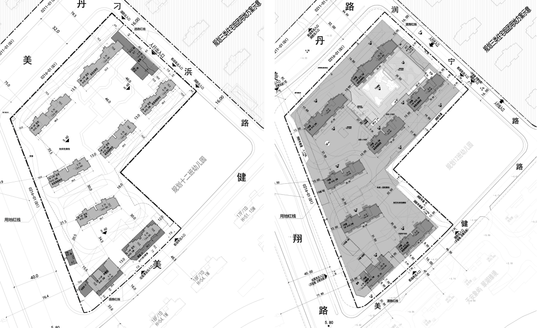 项目由四幅地块组成,总建筑面积约11万方。东侧两宗地容积率仅1.2,限高40米;西侧两宗容积率1.5-1.6,限高60米。整体秉承低密度规划,将打造31栋4至17层的住宅,产品组合预计为洋房+叠墅+小高层,确保居住的舒适度和纯粹性。