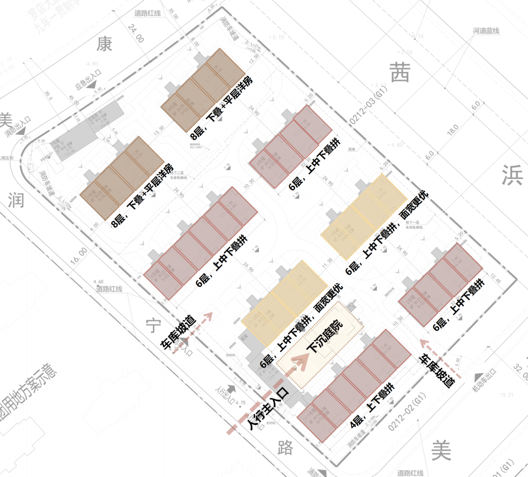 根据最新规划调整方案,项目将整个社区的地面层整体抬升了约5-6米!社区内部活动地面的绝对标高达到约10.6米,而单元楼首层的地面标高则来到10.75米,使得整个社区宛如一个“浮”于地面之上的生态岛屿。