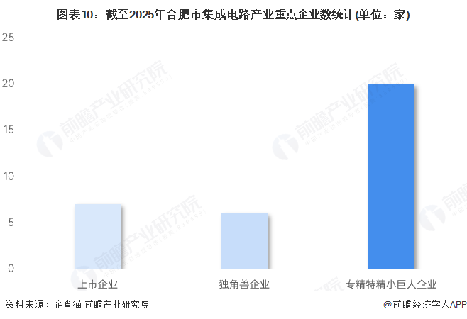 截至2025年11月,合肥市已汇聚集成电路上市企业7家,独角兽企业6家,国家级“专精特新小巨人”企业20家。合肥市集成电路产业企业竞争力十分强劲。