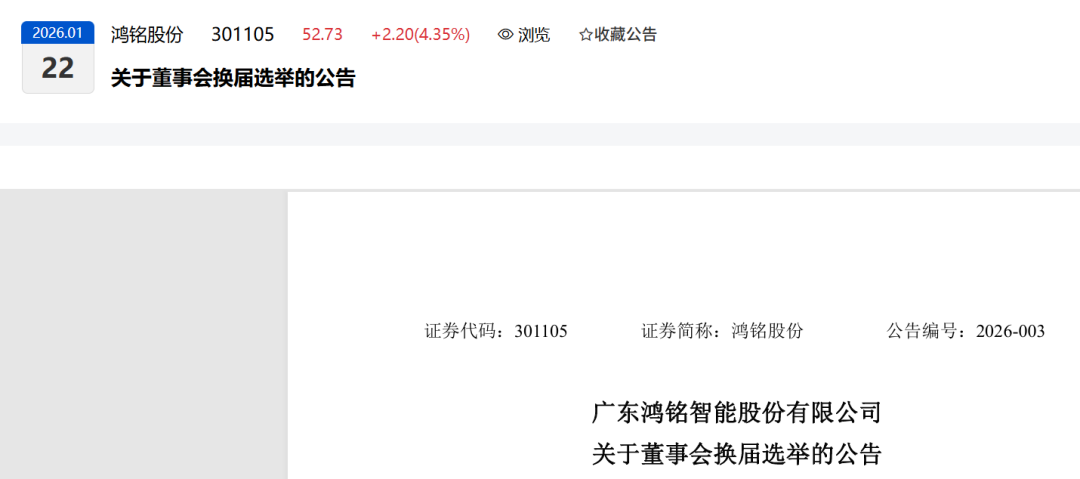 2026年2月7日广东鸿铭智能股份有限公司在近期完成了一场备受瞩目的权力交接。公司实际控制人之子、2000年出生的金玺,在董事会换届中被选举为新任董事长兼总经理,全面执掌公司。然而,就在其接班公告发布仅一周后,公司随即发布了2025年度业绩预亏公告,预计亏损额较上年进一步扩大。