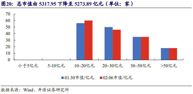 2026 年 2 月 2 日至 2026 年 2 月 6 日,159 家企业的市值整体下降,总市值由 5317.95 下降至 5273.89 亿元,市值中值由 23.41 下降至 22.66 亿元。