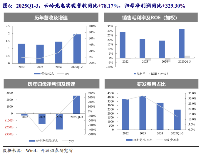2025Q1-3,云岭光电实现营收 1.94 亿元同比+78.17%,归母净利润 2596.94 万元 同比+329.30%。