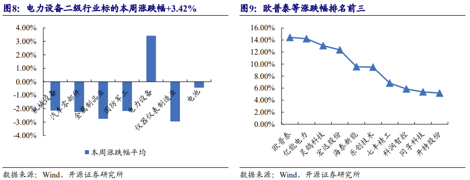 高端装备行业本周市盈率中值降至 36.0X,欧普泰+14.44%、亿能电力+14.23%、灵鸽科技+13.08%涨跌幅排名前三。(高端装备行业包含机械设备、汽车零部件、金 属制品业、国防军工、电力设备、仪器仪表制造业、电池二级行业)