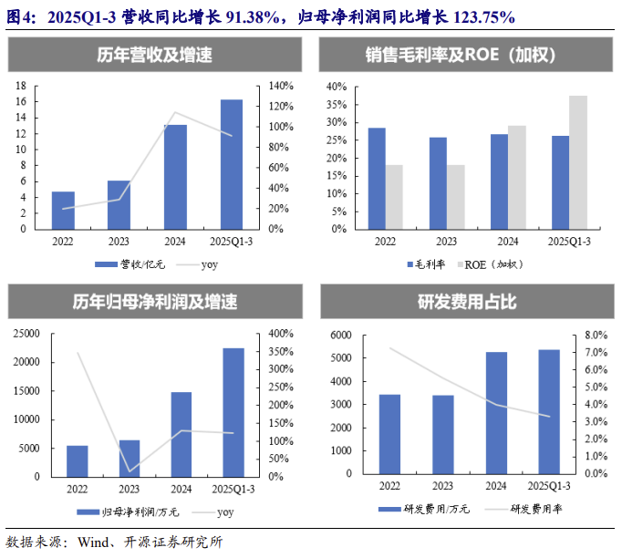 2025Q1-3 蘅东光营收和归母净利润分别为 16.25 亿元和 2.24 亿元,同比增长 91.38%和 123.75%。