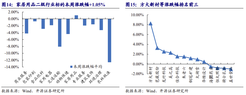 消费服务行业本周市盈率中值降至 46.9X,方大新材+8.25%、芭薇股份+3.28%、龙竹科技+2.54%涨跌幅排名前三。(消费服务包含商业服务、包装印刷、食品饮料、 家用电器、交通运输、动物保健、家居用品、专业服务、建筑装饰、环境治理、农 林牧渔等二级行业)