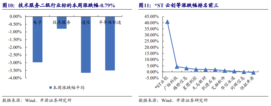 信息技术行业本周市盈率中值降至 74.8X,*ST 云创+40.85%、广脉科技+4.29%、路桥信息+3.04%涨跌幅排名前三。(信息技术行业包含电子、技术服务、通信、半导 体制造等二级行业)