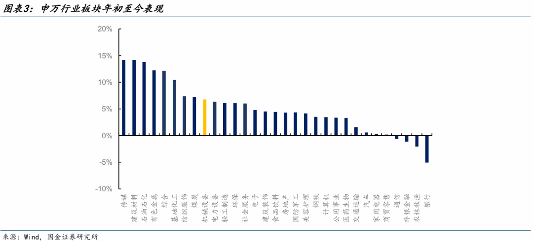 2026年至今表现:SW机械设备指数上涨6.72%,在申万31个一级行业分类中排名第9;同期沪深300指数上涨0.29%。