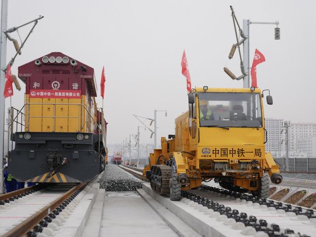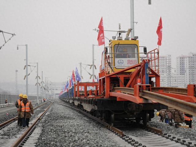 2月6日,中铁一局施工人员操作设备在西康高铁安康西站段铺设无缝钢轨。 2月6日,在西康高铁建设现场安康西站段,随着最后一对钢轨精准落位并完成锁定,由西成客专陕西公司建设、中铁一局施工的西安至安康高速铁路全线铺轨完成。 西康高铁是国家中长期铁路网规划“八纵八横”高铁通道中包(银)海通道、京昆通道的重要组成部分,设计时速350公里。建成通车后,西安至安康的铁路运行时间将由现在的3小时左右缩短至1小时以内,将大幅缩短关中平原城市群与陕南秦巴山区的时空距离,对促进地方经济发展具有重要意义。新华社记者 赵英博 摄