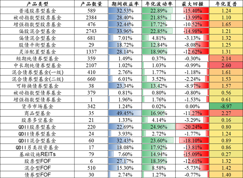 二、策略表现:基金业绩显著分化,权益与商品类领涨市场