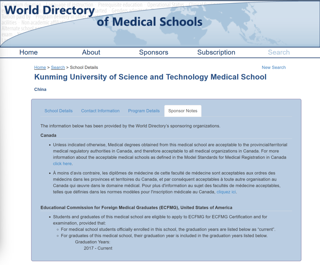 世界医学院校名录是由世界医学教育联合会(WFME)和国际医学教育研究基金会(FAIMER)共同编撰的全球性权威数据库,该名录是全球医学教育质量的基准。