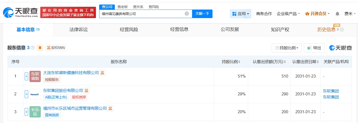 每经AI快讯,天眼查App显示,近日,福州福见康养有限公司成立,法定代表人为王星辉,注册资本1000万元人民币,经营范围包括养老服务、人工智能应用软件开发、人工智能通用应用系统等,由东软集团(600718)、大连东软睿新健康科技有限公司、福州市长乐区城市运营管理有限公司共同持股。