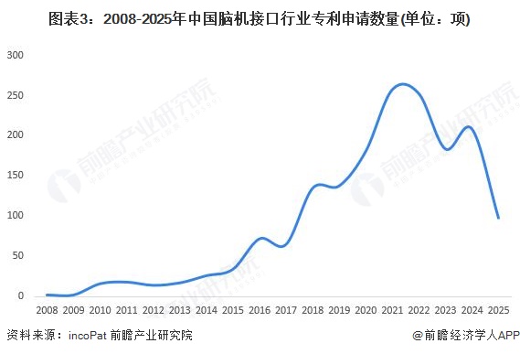 从专利申请数量来看,近年来我国脑机接口行业专利申请数量呈稳步增长趋势。2021年我国脑机接口行业专利申请数量最多,达258项。2024年我国脑机接口行业专利申请数量共有209项脑机接口行业专利被申请。