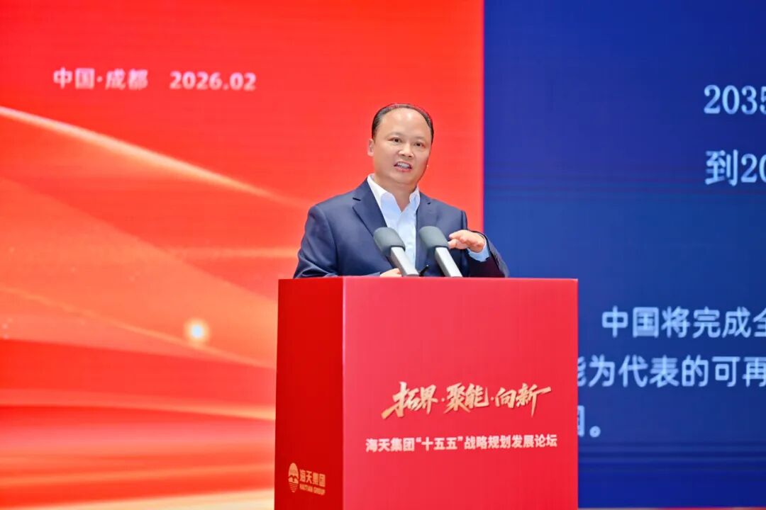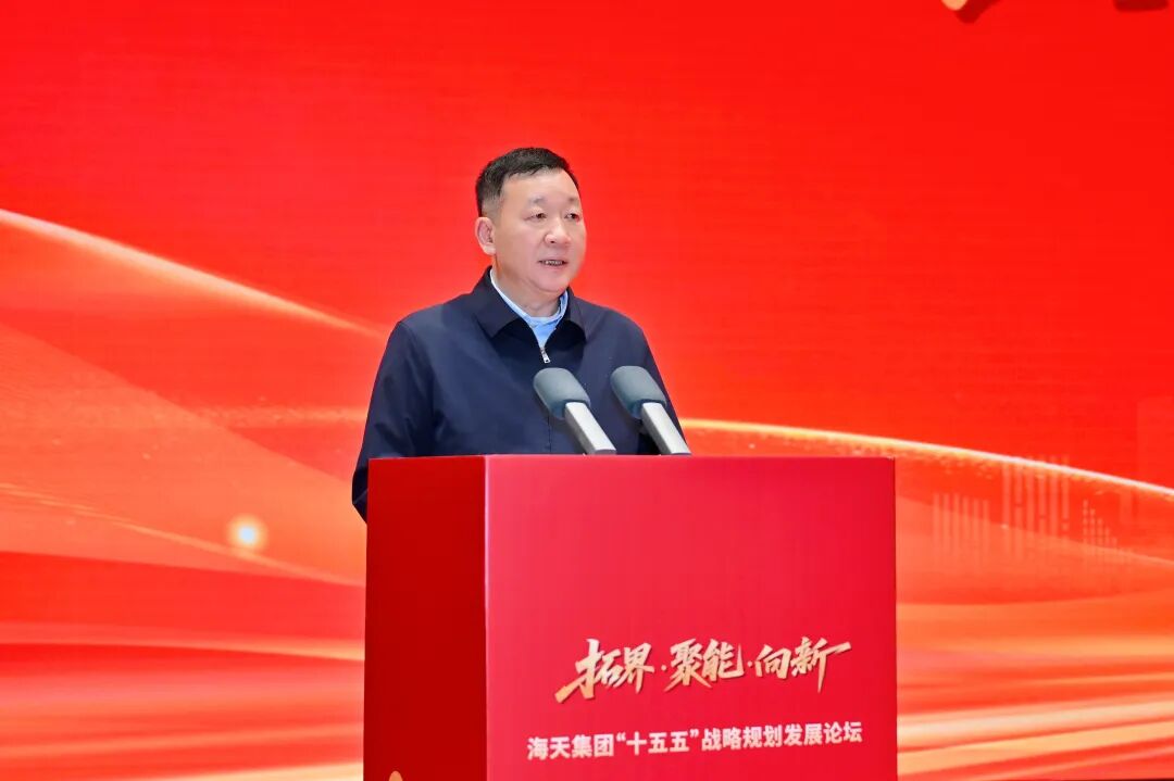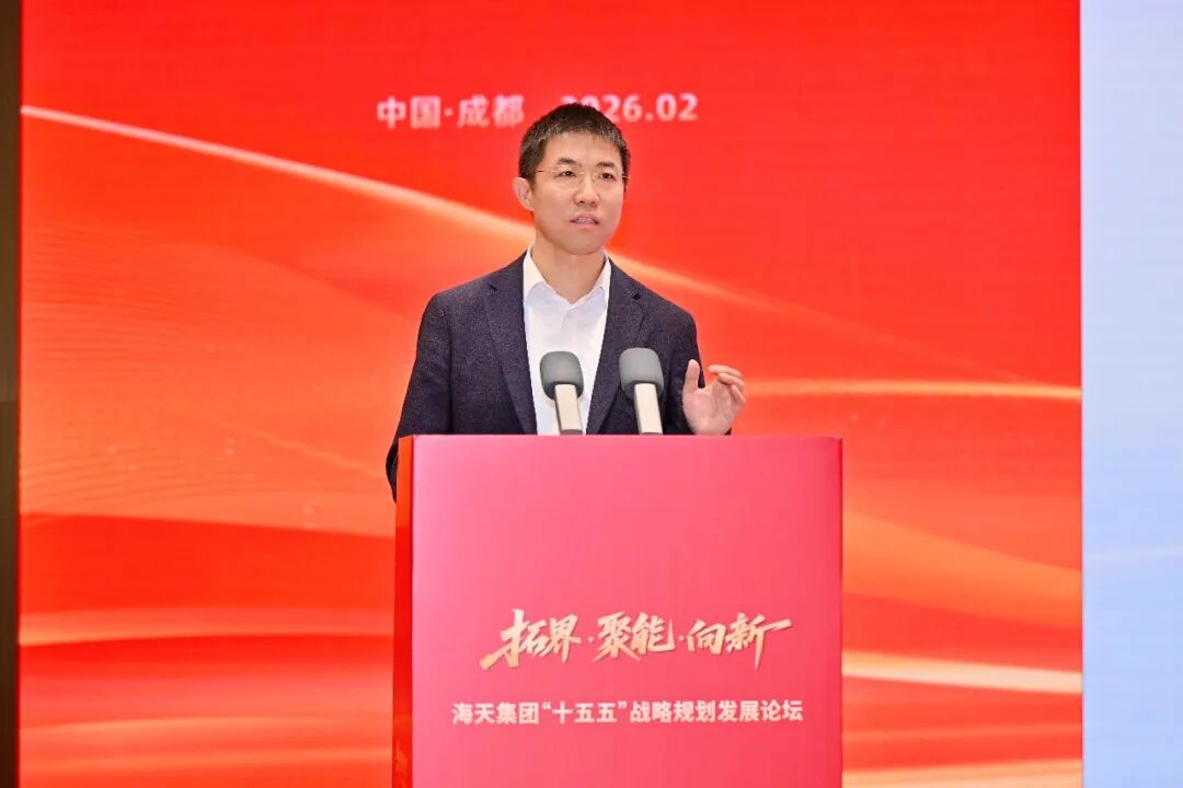 四川天府新区党工委委员、管委会副主任彭天宇为论坛致辞,结合天府新区高质量发展定位与产业布局导向,寄语海天集团牢牢把握时代机遇、深耕核心领域,在新区产业升级和绿色发展中主动担当、积极作为,实现企业与区域发展同频共振、共赢发展。