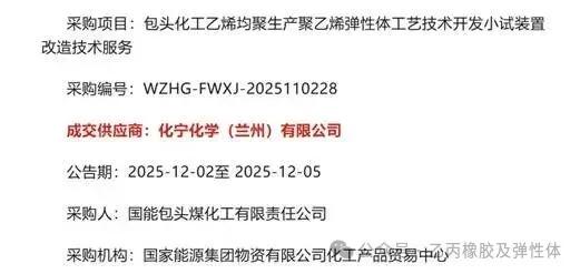 化宁化学(兰州)有限公司是由中石油集团公司高级技术专家蔡小平教授牵头成立,是一家以高端聚烯烃材料研发及工艺开发为方向的公司。与中科院、兰州大学等国内知名高校和科研机构建立了良好的合作关系,技术涉及聚烯烃弹性体(POE/POP)、乙丙橡胶、环状聚烯烃(COC)、超高分子量聚乙烯等领域,并于2025年12月成功中标国家能源集团包头煤化工聚烯烃弹性体工艺技术开发实验技改项目。