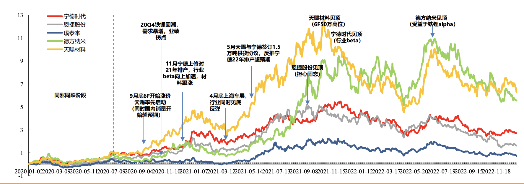 2020 年下半年起,国内新能源车销量迅速修复并加速放量,渗透率从 4%–5% 快速提升至接近 10%。以宁德时代为代表的龙头电池厂商,多次上修排产指引,21–22 年行业出货最终均显著超出年初预测。在需求持续超预期的背景下,产业链价格体系开始自下而上松动。